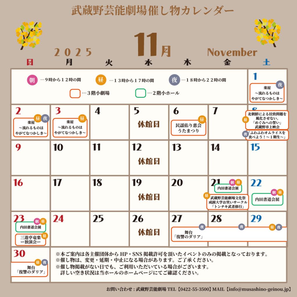 11月も武蔵野芸能劇場では、多彩な催しを予定しております。