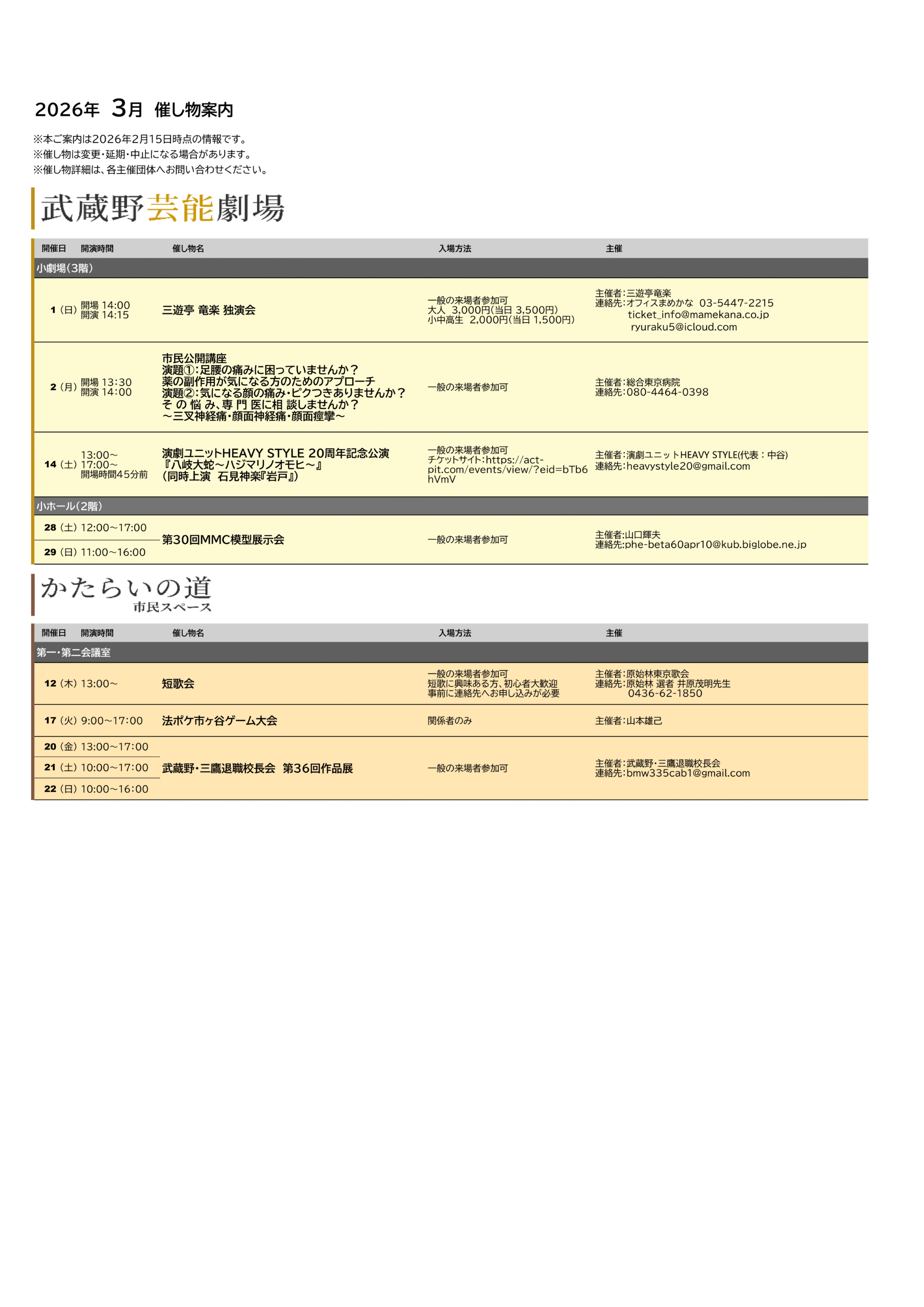 2026年3催し物案内のお知らせ